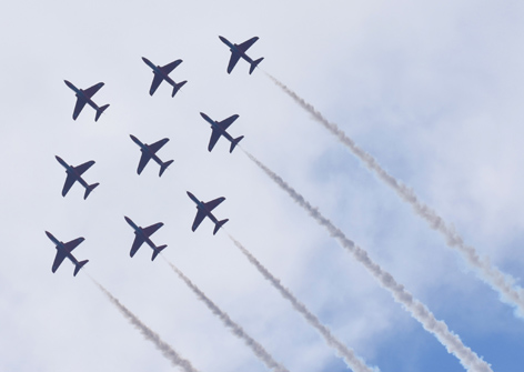 RED ARROWS - 2012. The seven plane display. In respect of the Team members lost in the last year.